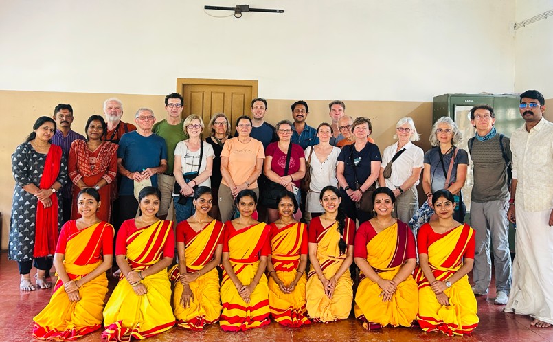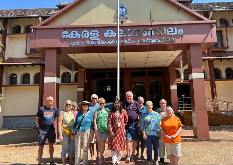 It was in 2003 Kerala kalamandalam launched a distinctive project famously known as ‘a day with the masters’ in association with Kerala tourism. ‘A day with the masters’ is a pilgrimage to the most sacred temple of arts, with an unique menu of presentations that bring out the grandeur of the institution. Yet there had been no specific project to guide the visitors within the vast Vallathol Nagar campus of kalamandalam and the nila campus for decades. The guides are the project coordinator or the trained senior art-students who receive the visitor at the entrance of the huge kalamandalam campus at Vallathol Nagar.Then he/she can visit the Koothambalam(the traditional temple theater meant for the make-up, costuming and performance of art forms. Inside the koothambalam, there are granite pillars on which are carved 108 karanas/dance-poses taken from the natyasastra, the 2nd century treatise on Indian dramaturgy). The kalaries/classrooms are the space where students are trained in the different art-forms like chenda - the high sound instrument, maddalam - the one horizontally held by the player and played by both hands, edakka shaped like an hour-glass producing a mellifluous voice, mridangam and the powerful tones of mizhavu, thimila etc. These are the places where percussion-music is taught. Then one for training vocal music such as classes of kathakali music, karnatic music are also there.